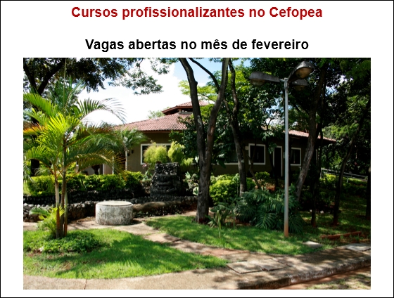 Dois cursos profissionalizantes, que acontecerão no Cefopea, terão abertura no dia 06 de março. Os cursos de Jardinagem e de Produção de adubo, patrocinados pelo Instituto Cyrela , terão uma abertura no […]